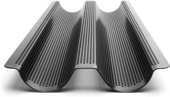 Craving the taste of a warm, crisp-crusted baguette, fresh out of the oven? This Non-Stick French Baguette Pan will provide you with what you need for these homemade breads. Our lightweight and easy-to-clean, non-stick bakeware makes baking a piece of cake. Eliminating the need for greasy cooking aids, this pan will not only remove the hassle, but add the health to baking, making their easy release of baked goods even sweeter. This pan features a must-have perforated surface for air circulation and crispy crust. Just what you need for a traditional and tasty baguette, without heading to the bakery.