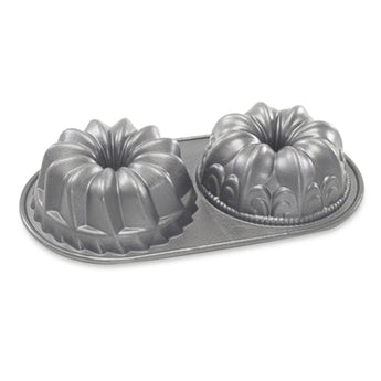 Bake once and have two mini versions of classic Bundt shapes, the Fleur de Lis and Kugelhopf to serve or give away. Great pan to create smaller portion cakes as well as bread, molded desserts and savory dishes.