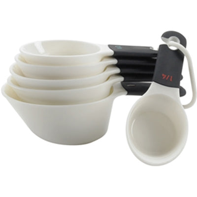 | These measuring cups from OXO are an essential for every kitchen. The Measuring Cups feature brightly colored numbers so measurement markings are easily recognizable. The Cup handles have soft grips for added comfort. Constructed of sturdy plastic, the Cups make dipping into flour and sugar a breeze. |