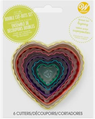 Cut with Wilton FONDANT DOUBLE CUT-OUTS SET. 6 cutters in set This durable cut-out set features a straight and crinkle side, allowing you to create unique layering effects with twice the cutting options.