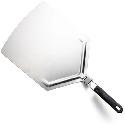 KEEP COOL FOLDING HANDLE: The handle of the metal pizza spatula folds in to save space when storing. The handle is also designed to stay cool longer so you can more comfortably handle the pizza peel.