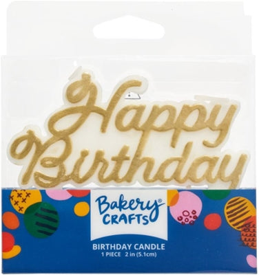 Add a touch glamour or shine to any birthday dessert with this gold script happy birthday candle! 6 packages of candles per box.