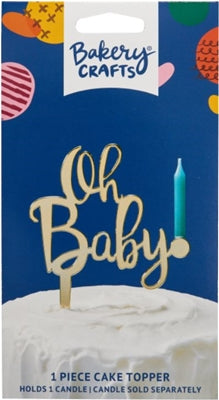 Oh Baby! What a great word to say when you are celebrating the expecting little one at a baby shower! The perfect way to complete your special occasion sweet treat! Fits 1 standard size candle or can be used alone as a cake decoration. 12 retail packages per box.