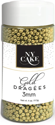 NYCake Dragees -- 4oz Bottle -- 3mm Gold