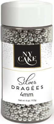 NYCake Dragees -- 4oz Bottle -- 4mm Silver