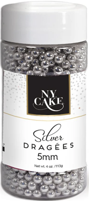 NYCake Dragees -- 4oz Bottle -- 5mm Silver