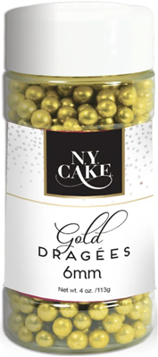 NYCake Dragees -- 4oz Bottle -- 6mm Gold