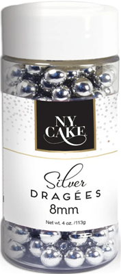 NYCake Dragees -- 4oz Bottle -- 8mm Silver