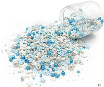 A crumble mix like from a fairy tale. With sugar pearls in white, silver and blue as well as beautiful snowflakes in white and blue ❄️