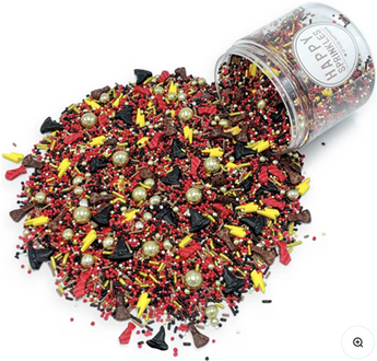 The mix contains yellow lightning bolts, red ties, black hats and cute little brooms, all symbols of the mysterious school of magic. Highlights are the golden chocolate balls, which give your treats a touch of magic - whether on cupcakes, cakes or cookies with this mix you are perfectly prepared for the next theme party. 🦉