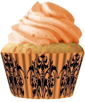 Standard Orange Black Damask Grease Proof Cupcake Liners - 32 per pack