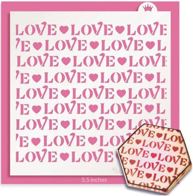 The word LOVE repeated with hearts. A perfect background stencil for Valentine's Day, weddings, and anniversaries.