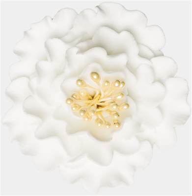 2.5" Gum Paste White Peony with Yellow Center