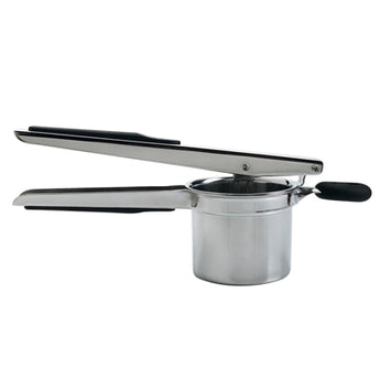 Rest the Potato Ricer on a pot or bowl and squeeze the soft handles together for perfectly mashed potatoes. Strong stainless steel makes this Ricer sturdy, and a non-slip knob holds it in place on any pot or bowl. Make your own baby food by ricing fruits or vegetables.