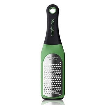 The Microplane Artisan Series is a contemporary addition to Microplane's collection of paddle-shaped graters. The expansive surface area offers ample space to make fast work out of grating your favorite foods. The stainless steel coarse blade easily grates hard cheeses such as Parmesan and Romano, as well as a wide range of fruits and vegetables, from pears, apples, and coconut to fresh carrots, peppers and ginger. There is no attachment for this grater. |