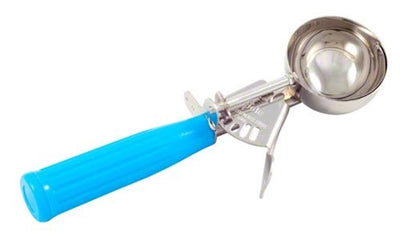 Stainless steel construction with plastic handles and ergonomically correct thumb tab design. Color-coded handles make portion control easy.
