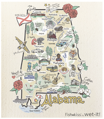 Made of 70% cotton and 30% cellulose, the cloths are soft to the touch, yet strong and durable with lasting quality. Our environmentally-responsive cloths are 100% biodegradable because of their all-natural fibers and Wet-it’s watercolor based prints.
