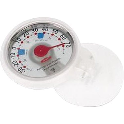 Make sure your cold food and beverages are stored at the proper temperature with the OXO Refrigerator/Freezer Thermometer. A strong suction cup keeps the Thermometer affixed securely to the inside wall of the refrigerator or freezer and the pivoting hinge lets you move the Thermometer against the wall so it won't take up space or get in the way. A frosted glass back panel allows the light to shine through, illuminating the large numbers and making them easy to read. Proper refrigerator and freezer temperature zones are clearly indicated in blue, and Fahrenheit and Celsius temperature scales increase convenience.