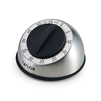 With the sleek stainless steel look, this timer will look great in any kitchen. The housing is brushed to help hide fingerprints. A rubberized turn knob and non slip base add to the convenience features. Program up to 60 minutes and alerts to times up with a long ring.