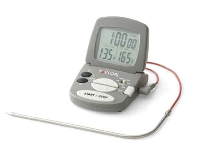 Does your food take longer to cook because you have to keep opening the oven door to check if the food is done or not? No need to constantly open the oven door anymore! The thermometer sits on the counter while the cord winds through the oven door and the temperature can be read without opening the oven door, very convenient. This digital cooking thermometer with timer and probe is a great tool for your kitchen. The thermometer displays temperature in Fahrenheit (32 degrees F to 392 degrees F) and Celsius (0 degrees C to 200 degrees C) and conveniently monitors exact temperature of meat, poultry, or any food without opening the oven door. The thermometer comes with a durable 6 inch, stainless steel probe and a 4-foot silicone cord. The cord is safe up to 485 degrees F/250 degrees C. When your food hits your preset time or desired internal temperature, an alarm signal occurs to ensure perfect results. You can display the thermometer 2 ways: stand up display for counter top use or there is a magnet on the back to hold on to an oven door.