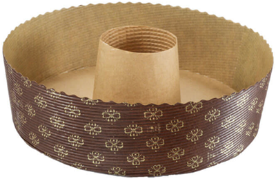 This is a free-standing paper ring mold. Constructed with a corrugated sidewall and base. The mold has a brown background with a gold floret print overlay. The center hole is 3″. Oven safe in temperatures up to 390° F. Place molds on baking sheet for additional support in the oven. Microwave and freezer safe. Grease and warp resistant. Suggested uses: cake|crumb cake|bundt cake|pound cake|cinnamon rolls.