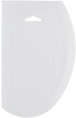 Bowl scraper lets you easily transfer batter, icing or dough from bowl to work surface or decorating bag quicker. Also can be used as smoother.
