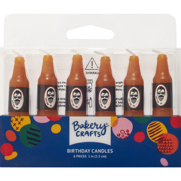 Celebrate with these fun, beer bottle shaped candles. 6 packages of candles per box.
