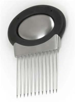 The stainless steel tines hold the onion steady and guides your knife for even slices.