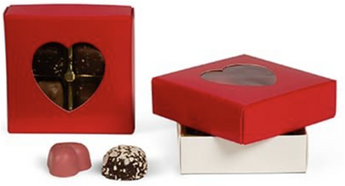 Red 3 11/16" x 3 11/16" x 1 1/8" Square Box With Heart Window (1 lb Box)