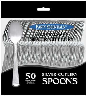 - Hard silver plastic spoons feature traditional flatware styling; complete your place settings with Party Essentials plastic silver forks and knives