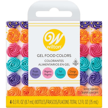 - Customize your baked goods with this vibrant magenta, orange, teal and purple food color set from Wilton